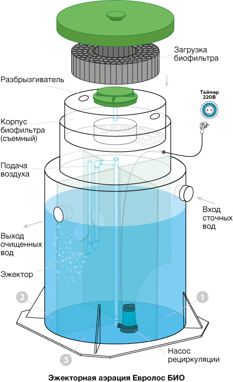 Наличие двух процессов очистки в верхней части установки позволяют рассматривать этот узел либо как капельный биофильтр, либо как механический аэратор. Поэтому дискуссия «что это — биофильтр или аэратор» не утихает на просторах интернета уже давно.