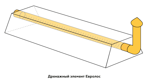 Дренажный элемент представляет собой ёмкость формы усеченной пирамиды без дна, располагающуюся на подушке из щебня. Через всю длину проходит дренажная труба, посредством которой самотеком сбрасывается вода. Так как система полностью вентилируемая, то на поверхности щебня образуются аэробные бактерии. Путём взаимодействия с кислородом происходит окислительный процесс нитрификации. Далее вода впитывается в почву, запускается процесс денитрификации.